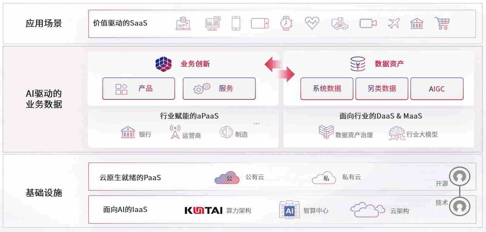 数字时代,,围绕企业数字化转型的关键要素,,恒盛娱乐数码开创性的提出数云融合战略和技术体系框架,,着力在云原生、、、数字原生、、、、AI原生和信创产业上架构产品和服务能力,,为处在不同数字化转型阶段的快消零售、、、、汽车、、、金融、、医疗、、政企、、、、教育、、、运营商等行业客户提供泛在的敏捷IT能力和融合的数据驱动能力,,,,构建跨界融合创新的数字业务场景和新业务模式,,,助力企业级客户建立面向未来的核心能力和竞争优势,,,,全面推动社会的数字化、、、智能化转型升级。。。。